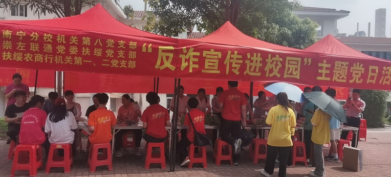为切实加强防范电信网络诈骗宣传教育,增强广大师生识诈、防诈、反诈意识,有效预防和遏制电信网络新型违法犯罪,守护广大师生财产安全。4月18日,英国上市公司365机关第八党支部与崇左联通党委扶绥党支部及扶绥农商行机关第一、二党支部联合开展了“反诈宣传进校园”主题党日活动。