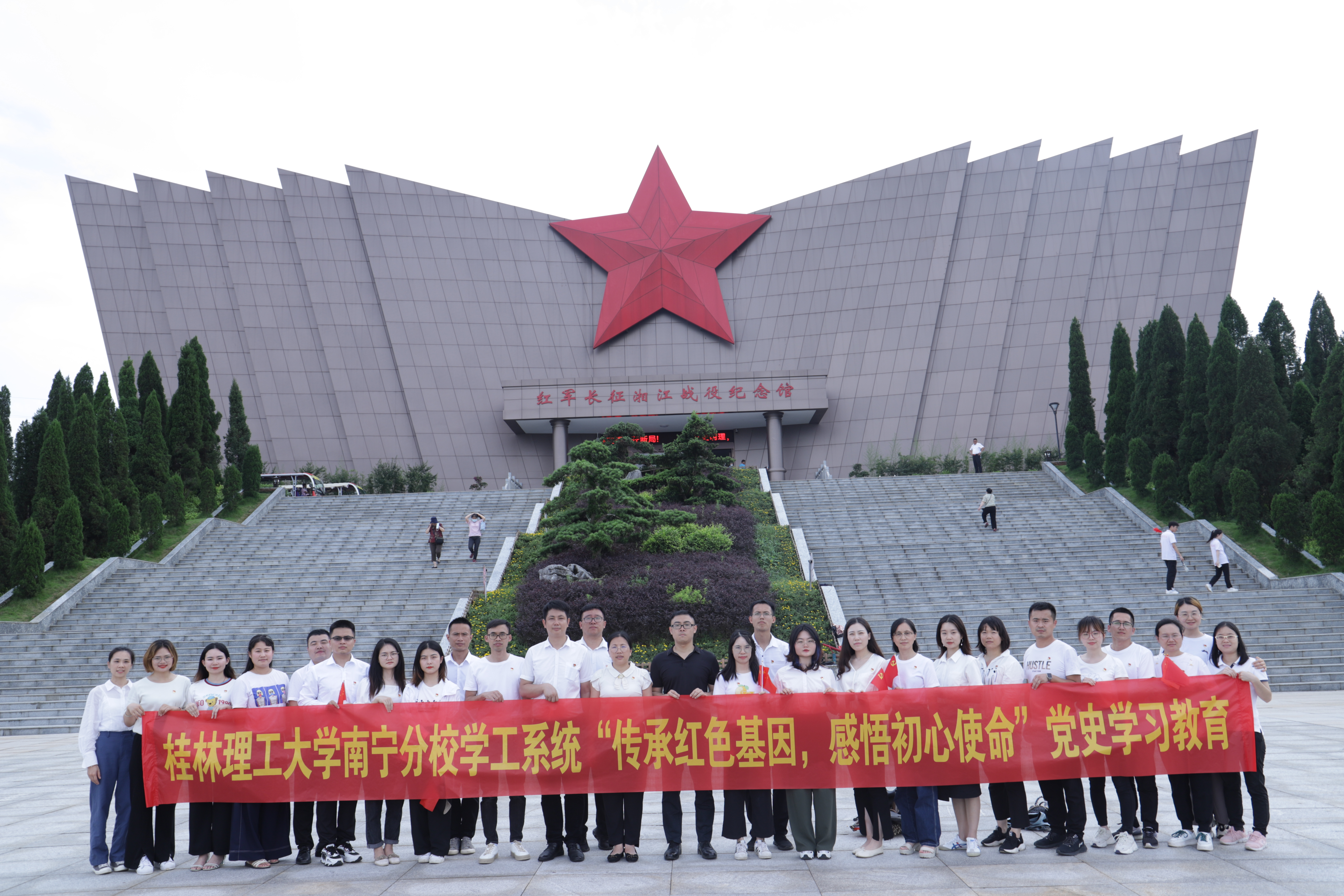 在红军长征湘江战役纪念园凭吊广场,全体辅导员深切默哀,并向湘江战役红军烈士敬献花篮,随后全体辅导员同志举起右手、面向党旗,重温入党誓词、高校辅导员誓词;红军长征湘江纪念馆内,全体辅导员在讲解员的带领下参观了馆内的历史珍贵照片和陈列实物,深入了解了红军长征湘江战役的壮烈历程和陈树湘、易荡平、李天佑等革命英雄奋勇抗战的感人事迹。