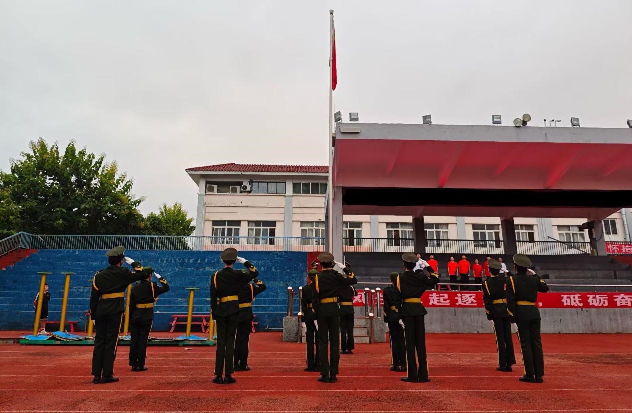 上午7时整,国旗护卫队迈着矫健的步伐护送国旗,伴着雄壮激昂的《义勇军进行曲》,五星红旗冉冉升起。艺术团代表深情朗诵《逐梦青春 强国有我》,表达了对祖国的美好祝福和报效祖国的雄心壮志。新生代表蒋文涛以“坚定目标 扬帆远航”为题作国旗下的讲话,他号召同学们坚定目标,在宝贵的时光里努力拼搏,为实现梦想而奋斗。