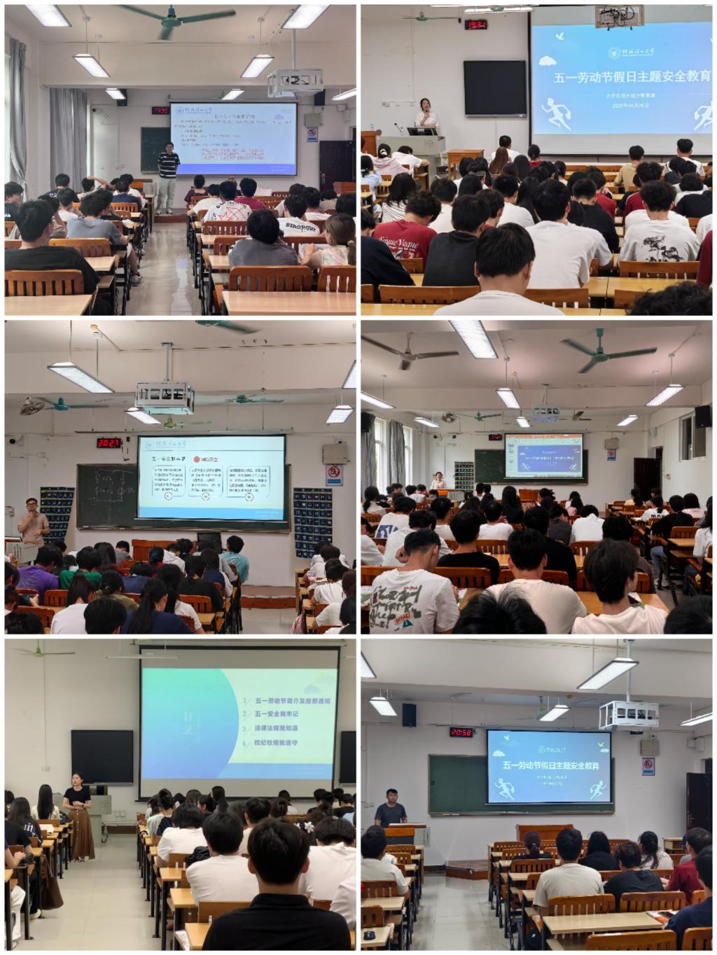 主题教育课上,各学院辅导员围绕劳动节的意义、放假安排及假期期间各类安全注意事项作了详细介绍。辅导员们强调,假期期间,一是要注意交通安全,不乘坐非法营运车辆,不租借电动车(或小汽车),避免前往未开发或危险区域游玩,防范极端天气影响;二是要加强财产安全,防范电信网络诈骗、非法传销、兼职陷阱,妥善保管贵重物品;三是要加强消防安全,严禁宿舍内使用大功率电器、私拉电线、存放易燃易爆物品,离校前关闭电源;四是要注意饮食安全,注意食品卫生,预防季节性传染病,严禁酗酒或参与危险活动;五是要加强网络安全,不点击不明链接,不传播不实信息,防范网络借贷和隐私泄露;六是要强化意识形态安全,教育学生遵守法律法规,不参与非法集会,不发表不当言论,警惕境外势力渗透。