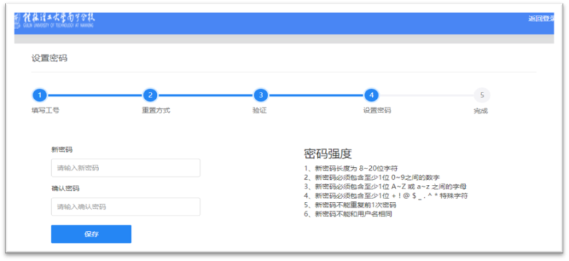 4、设置新密码,密码强度需要符合要求。