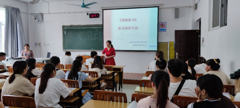 6月22日下午,我系在6311教室召开分析19-1班顶岗实习动员会。系主任何贵香、党总支副书记兼学工组长方艳出席会议,实习指导老师及分析19-1班全体同学参加了会议。