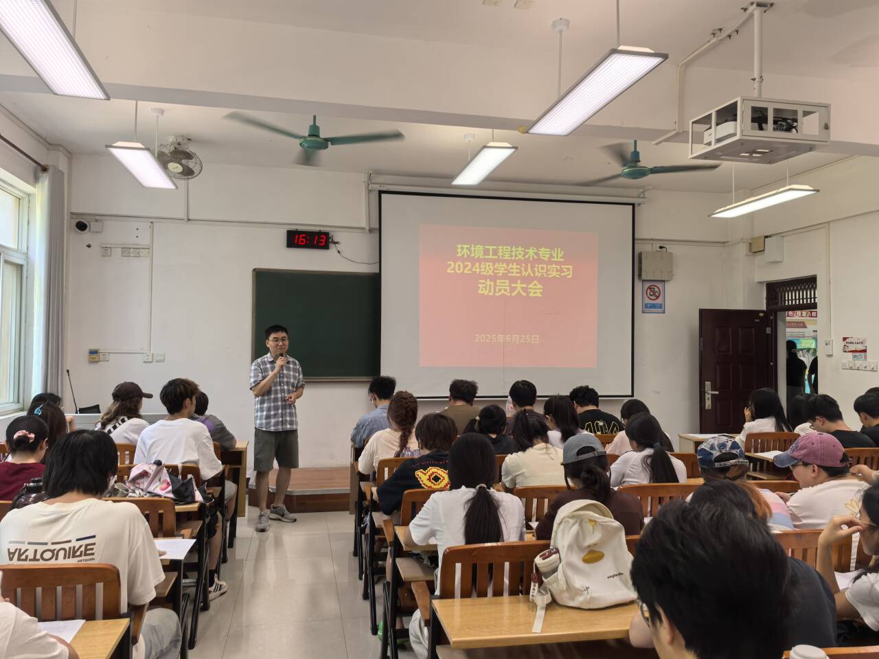 2025年6月25日下午,环境工程技术专业2024级学生认识实习动员大会在5204教室顺利召开。实习指导老师黄文富、莫福金,辅导员肖凯文以及环境工程技术专业24级全体学生参加会议。