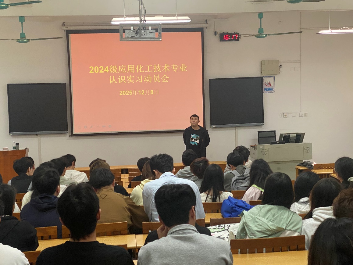 为进一步增进学生对化工专业的了解、提升专业学习兴趣,12月8日下午,我院在启智楼8203教室召开2024级应用化工技术专业认识实习动员会。实习指导老师赵义、冯桂芬、张艳玉、李赞超及辅导员杨波出席会议,2024级应用化工技术专业全体学生参加。