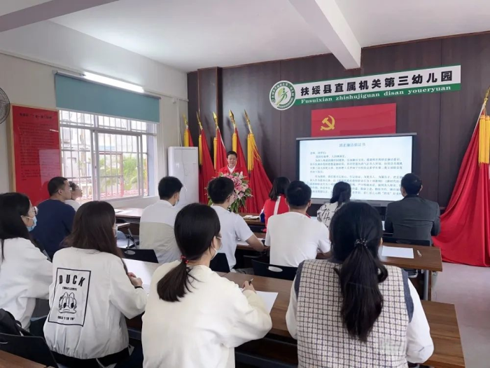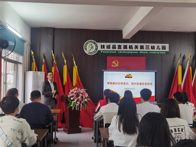 11月24日下午,我系学生第二党支部联合扶绥县直属机关第三幼儿园党支部在扶绥县直属机关第三幼儿园开展“廉洁文化进校园,清风正气润心田”主题党日活动。我系党总支书记石有总、学生第二党支部书记方艳和支部全体党员同志参加本次党日活动。