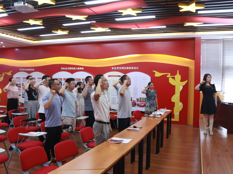 肖彩霞副校长领誓、全体党员重温入党誓词