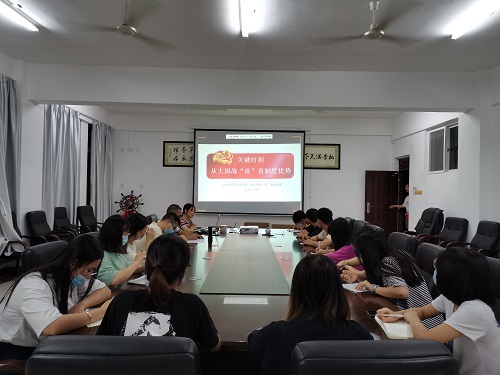 首先,由党支部书记方艳作题为“关键时刻从大国战‘疫’看制度优势”专题微党课,方艳书记从疫情防控斗争中坚持党对一切工作的领导、坚持以人民为中心、弘扬社会主义核心价值观以及争做合格党员四方面进行了阐释。