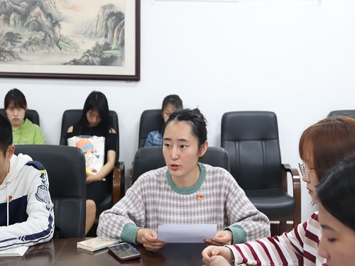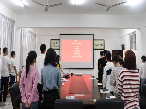 首先,全体党员首先观看了《不忘初心,继续前行》第一集“举旗定向”记录片,加强对以习近平同志为核心的党中央五年来治国理政的伟大实践的学习,领悟党中央继往开来、逐梦前行的勇气、担当和智慧,重温中国共产党人不忘初心、砥砺奋进的壮阔征程,激发了全体党员的爱国热情。随后,陈回归、王常娜、梁馨月、黄馨四位党员代表“以身边人讲述身边事,身边事感染身边人”,他们讲述发生在自己身上或者身边的动人故事,分享了自己与祖国同频共振中的所见、所闻、所感和所悟,向祖国深情告白。接着,全体党员饱含深情地朗诵了著名诗人舒婷的诗歌《祖国啊,我亲爱的祖国》,全体党员跟随着诗歌一起回顾了祖国过去的贫穷和人民千百年来的梦想与苦难,同时也深刻感受到了祖国让人振奋的崛起和新生,抒发了对祖国的无比热爱与无限期盼。
