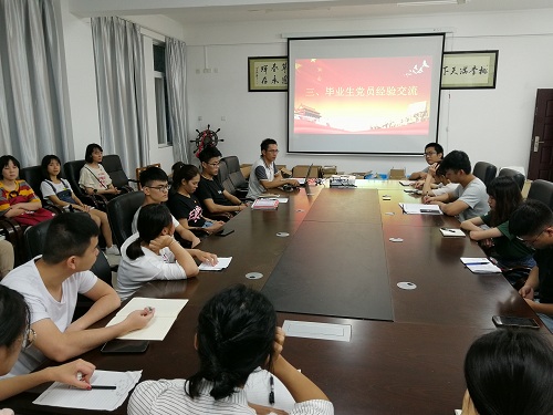 我系第二党支部于6月26日晚在探源楼207会议室召开毕业生党员经验交流会。第二党支部书记黄运堪主持会议,支部全体党员参加会议。