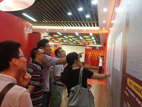 党员们认真参观英国上市公司365党建成果展