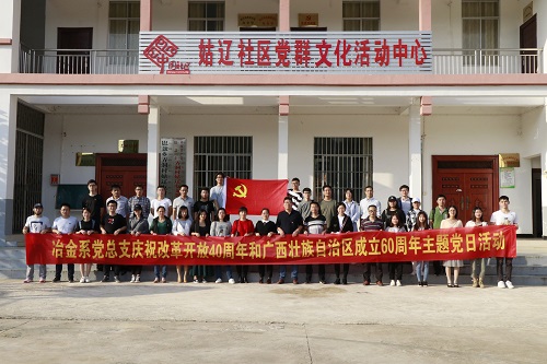 改革开放40年和自治区成立60年,广西农村面貌和农民生活发生了翻天覆地的变化。为了让广大师生党员深刻感受改革开放伟大成就,切身体验社会主义新农村建设,12月4日下午,冶金系党总支40多名师生党员开展了“庆祝改革开放40周年和自治区成立60周年”的特色组织生活。活动地点就近选取了具有代表性的美丽乡村与乡村旅游相结合的新农村建设典范——广西扶绥县岜盆乡弄洞村姑辽屯,以介绍讲解、交流讨论、走访参观的形式进行。