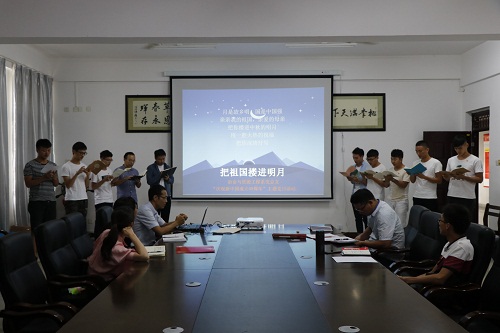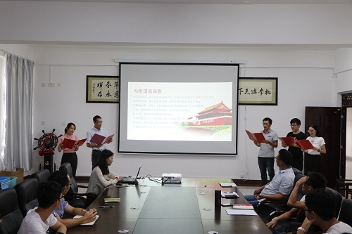教师组党员饱含爱国情感地诵读“歌颂祖国”作品