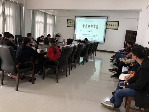 11月27日下午,教工第一党支部在探源楼5207会议室组织学习《中国共产党支部工作条例》。支部书记周素莲老师详细解读了《条例》内容,并就如何贯彻执行《条例》提出了意见,全体教工党员参加了学习活动。