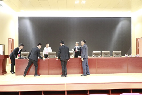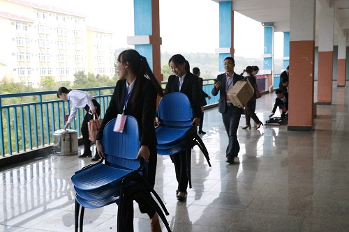 师生协助做好会场布置