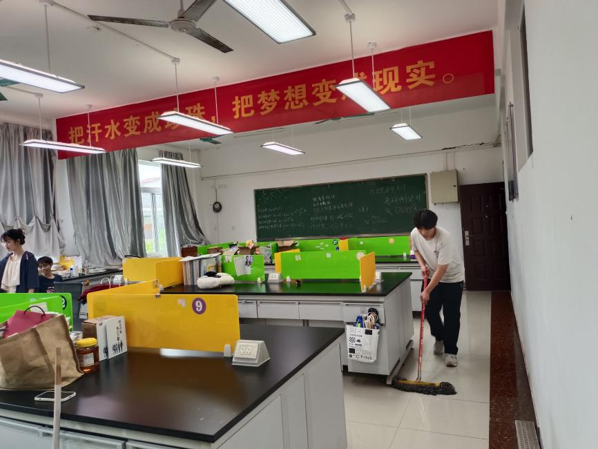 毕业生党员正在整理学院考研自习室
