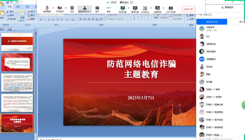 为进一步增强我系学生防范电信网络诈骗的意识和能力,切实减少电信网络诈骗案件发生,营造积极向上的校园学习生活氛围。我系于3月6日—12日在全系范围内运用成长成才课组织各班了开展防网络诈骗主题教育活动。