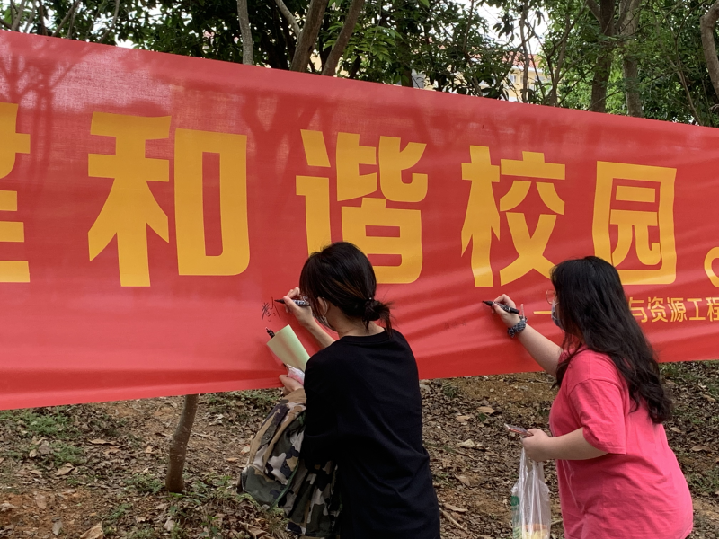 同学们在横幅上签字