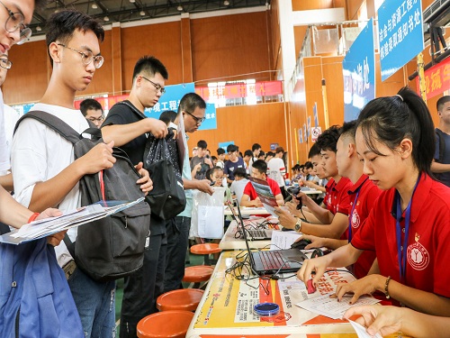 在体育馆二楼的系部新生报到大本营内,志愿者们配合协调、有条不紊。新生在班助及志愿者的引导下,在最短的时间内办理好了注册验印、保险购置、宿舍入住、饭卡办理、信息录入等手续。我系开设的“绿色通道”,为贫困家庭的新生提供了奖助贷勤方面的咨询服务,并为有需要的学生开具在校证明。
