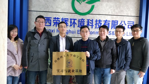 广西荣辉环境科技有限公司白经理、黄副经理热情接待了石有总书记一行。在座谈交流上,白经理首先对石有总书记一行的到来表示了热烈欢迎,介绍了目前在该公司实习的环境工程技术2016级学生的工作表现,随后简要介绍了未来三年的发展规划和用人计划,提出了在环境专业人才培养、课题研究等方面进一步合作的想法。石有总书记对白经理的接待以及接收实习生表示了感谢,王军正副主任简要介绍了系部专业建设和人才培养基本情况。双方围绕人才培养、课题研究、数据共建等方面的深入合作进行了探讨和交流,决定先从今年3月份共同申报课题做起。随后,双方一同挂起了实习与就业基地的校企合作牌子。