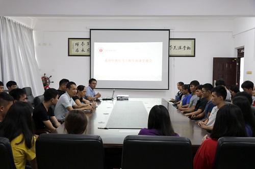 在听取同学们畅谈自己的学习生活适应情况后,该系主任何贵香以中秋佳节为切入点,对大家致以节日问候,提醒大家要记得给家人报平安送祝福,并谈到了要学会做好大学学习生涯规划,在努力学好的自己的专业技能的同时,要充分利用各种舞台来锻炼和提升自己。石有总书记则在交流中与大家分享了自己大学期间的蜕变经历,以身边学生成长的例子,鼓励大家要学会自强自立自信,不辜负美好的青春时光,多方面去提升自身的综合竞争力,并希望同学们树立正确的心态,不去和其他同学攀比物质,而是比拼学习、比拼能力和比拼态度,争取每一天都有收获,过着充实而又快乐的大学生活。