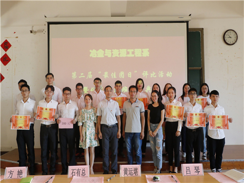 评比活动在全体师生共唱共青团歌中拉开帷幕,各班主要从班级的基本情况、思想建设、活动开展、荣誉成就、经验与不足、未来展望等多方面进行展示班级风采。每一支参赛队伍风采展示结束后,直接进入答辩环节,评委们针对班级代表所展示的内容有针对性地进行提问。经过班级建设成效展示,最终环境17-2、冶金17-1、应化17-2和化工17-1班荣获了“魅力冶金班”荣誉称号,分析17-1班、分析17-2班、应化17-2班、化工本16-1班、分析16-2班、冶工本16-1班、冶工本15-2班七个班级获得了“十佳班级”荣誉称号。分析17-2班徐畅、分析17-1班韦俊孚、应化17-2班姚贤福、化工本17-1强伟东、分析16-2曾小玲、冶工本16-1陈回归、冶工本15-2李辉7名同学被评为“十佳班级先进个人”。