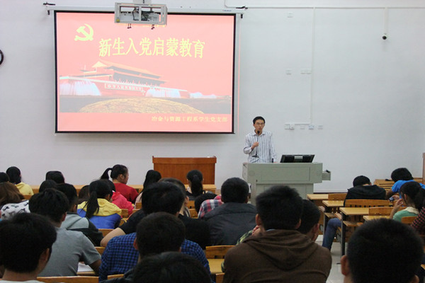 2013年10月24日晚,冶金与资源工程系学生党支部陈金鸿老师在启智楼8403教室给冶金与资源工程系2013级同学上了一节入党启蒙教育课。