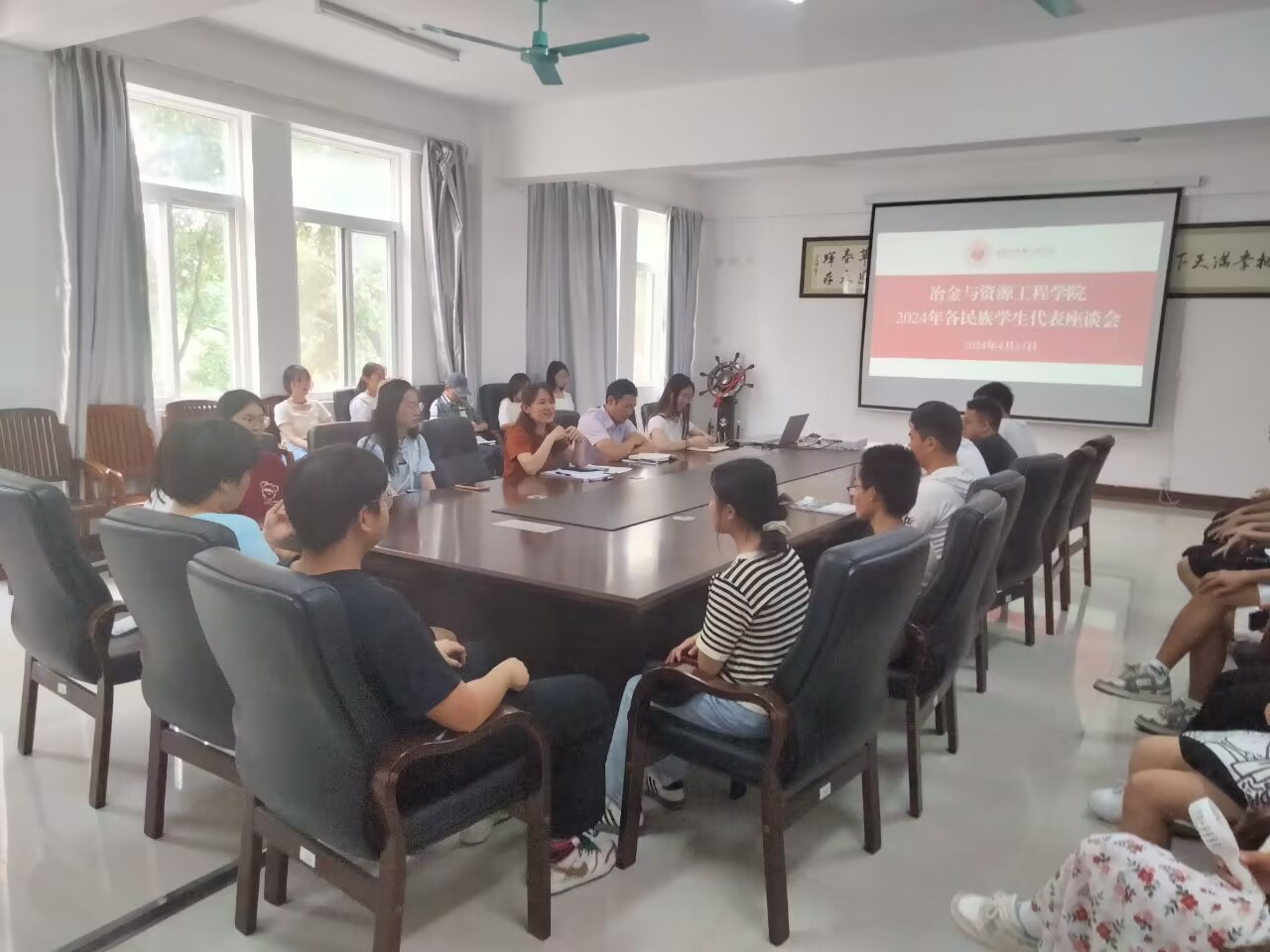 4月17日下午,我院在探源楼5207会议室组织召开各民族学生代表座谈会,促进各民族学生间的交流,了解和回应同学们实现全面发展的需求。学院党总支书记石有总,辅导员代表和不同年级的各民族学生代表参加了座谈会。座谈会由党总支副书记兼学工组长方艳主持。