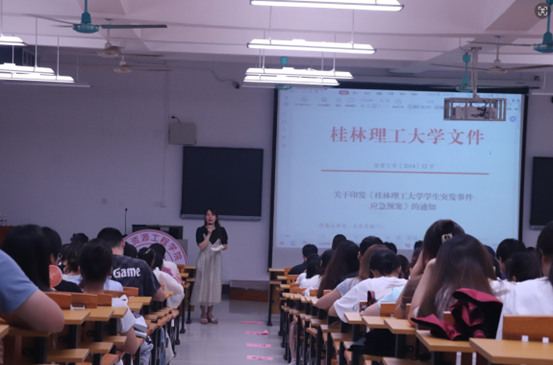 会议首先强调了宿舍长在宿舍管理中的关键作用,明确了宿舍长的责任与担当。要求宿舍长做好带头示范作用,积极引导宿舍成员遵守学校的各项规章制度。会上,主讲老师方艳就宿舍卫生、宿舍人际关系、宿舍安全等方面进行了详细的阐述和要求。着重强调了宿舍成员晚归、未归、夜不归宿的情况以及宿舍成员打卡签到事项,提醒宿舍长们要保持警惕,确保宿舍成员安全无虞。同时组织宿舍长学习关于桂林理工大学学生突发事件紧急预案。
