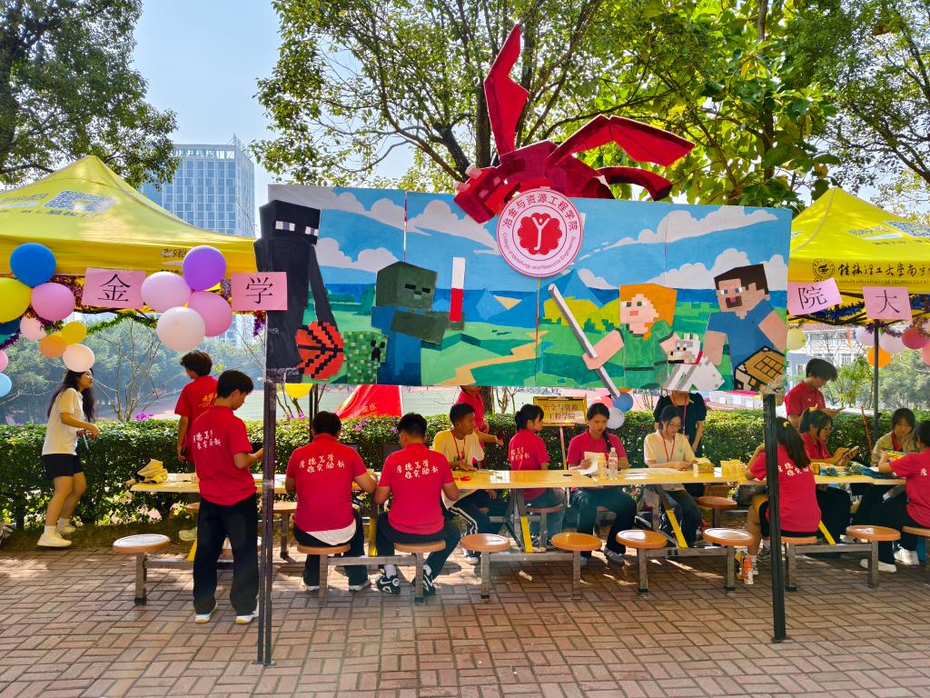 11月14日,一场激动人心的运动会正在紧锣密鼓地进行中,我院大本营的布置更是吸引了众多目光。在本次运动会,我院大本营的布置以风靡全球的沙盒游戏《我的世界》为主题,将虚拟世界与现实完美结合,为运动员和观众带来了一场视觉盛宴。