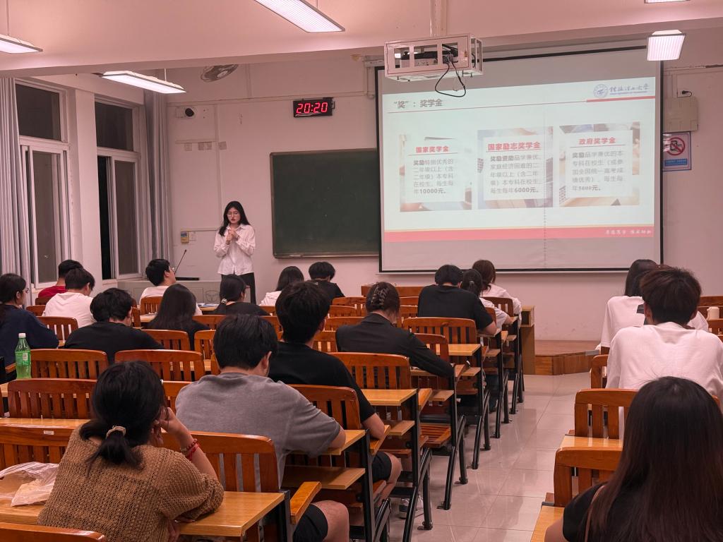 我院资助政策宣讲团队伍由12名获得国家励志奖学金的学生组成,4月10日晚,宣讲团成员李双伶同学走进我院大一班级,为同学们解读了国家资助政策体系。李双伶同学首先从国家奖学金、国家励志奖学金、国家助学金、国家助学贷款、勤工助学等多个方面,对资助政策进行了详细讲解;其次,李双伶结合自己的受助经历以及励志故事,帮助同学们更好地了解到国家资助政策;最后,在互动环节,同学们积极提问,就自己关心的问题与李双伶同学进行交流。