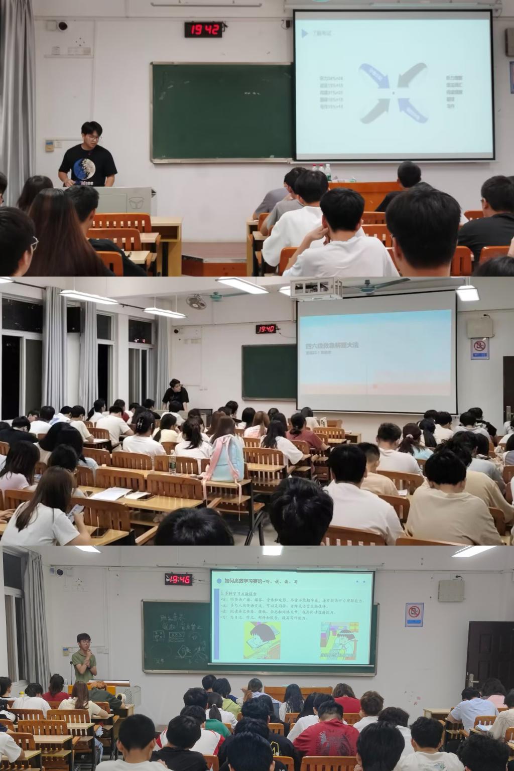 活动期间,学院共邀请了6位在英语等级考试中取得优异成绩的学生代表分享他们的备考经验和应试技巧,各位帮扶团成员从听力、阅读、写作和翻译等方面入手,详细介绍了他们的英语学习方法及考试技巧,并强调了英语学习对于大学生就业求职、考研等方面的重要性,并通过亲身经历鼓励同学们努力考取更好的成绩。