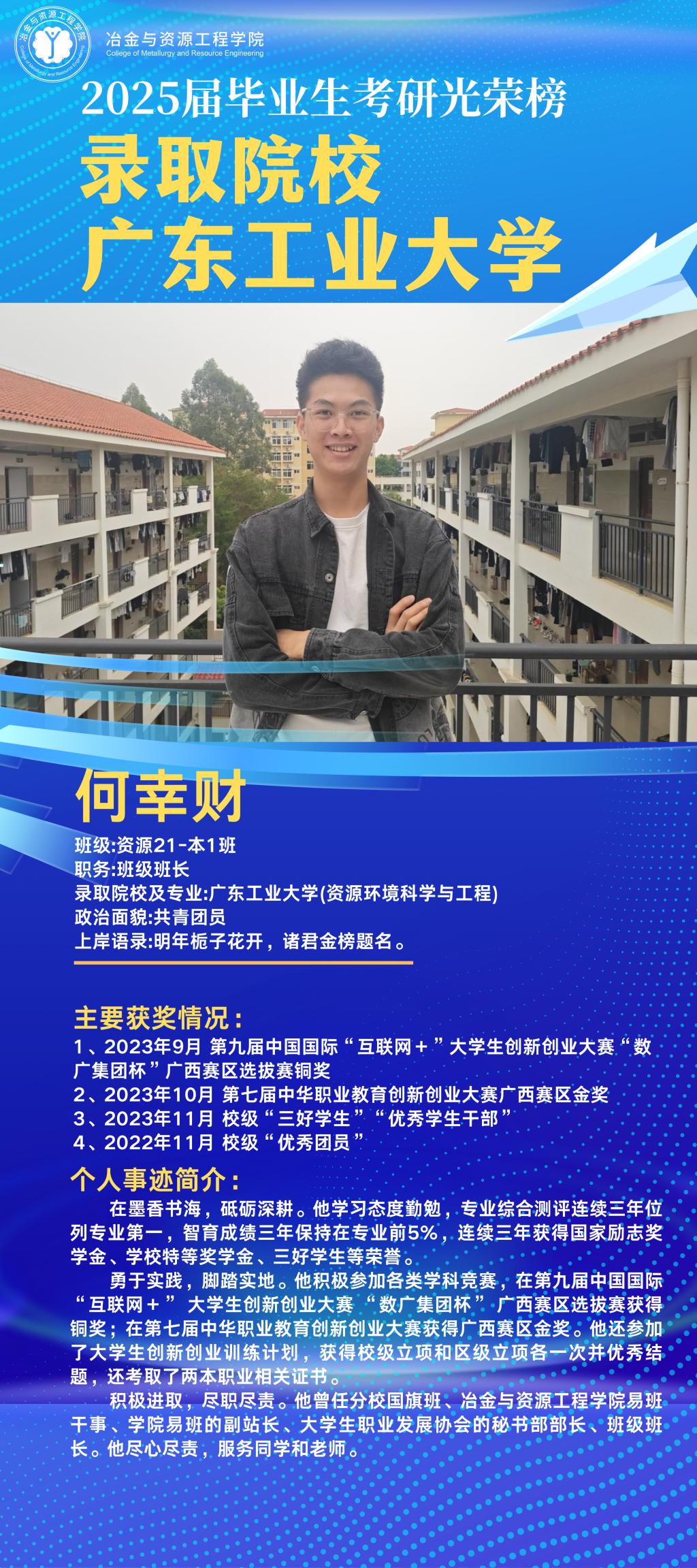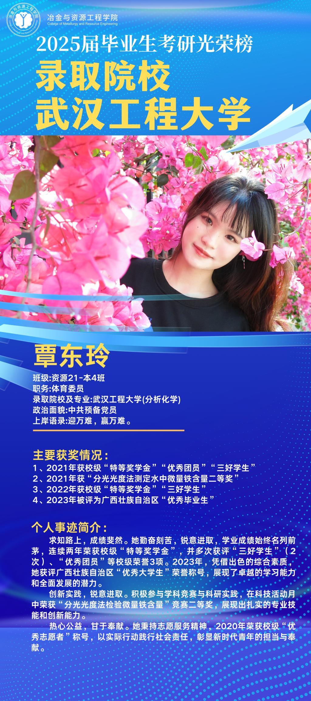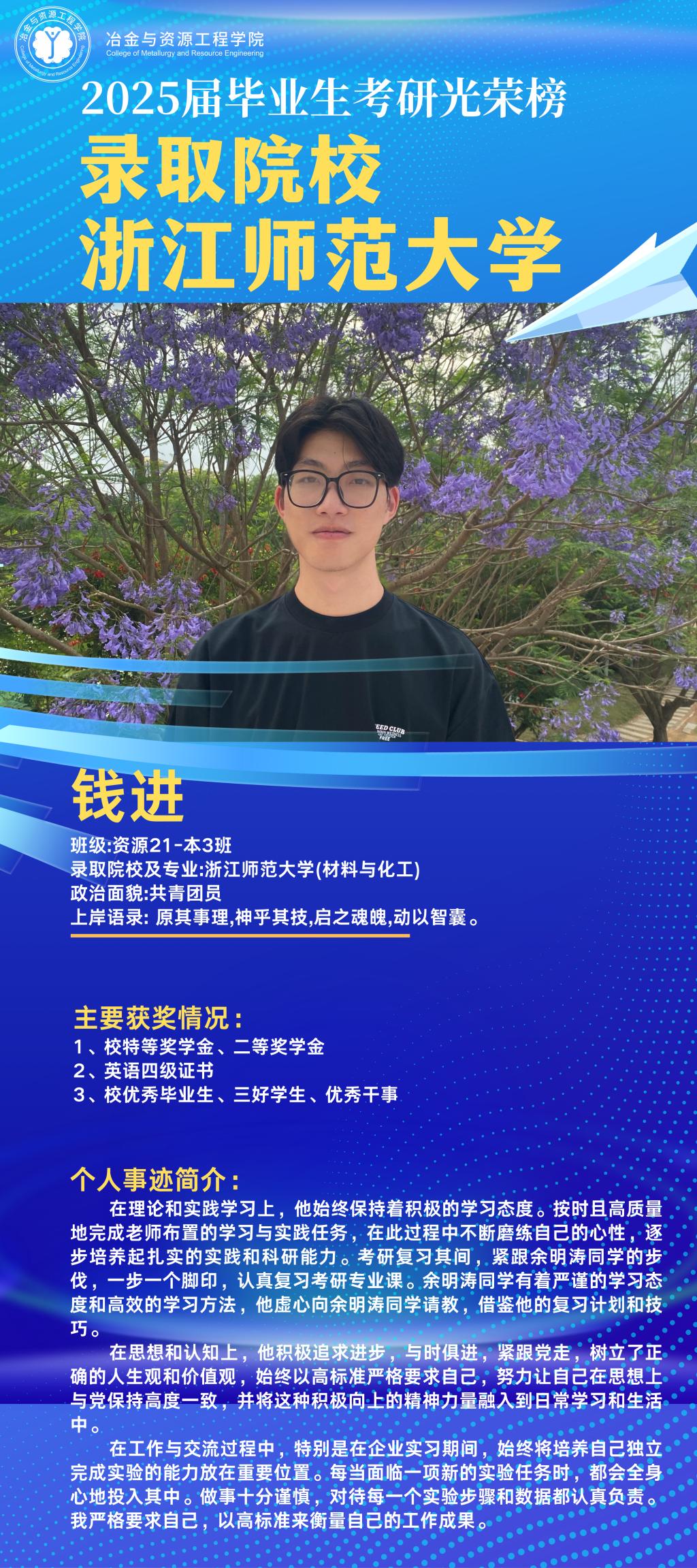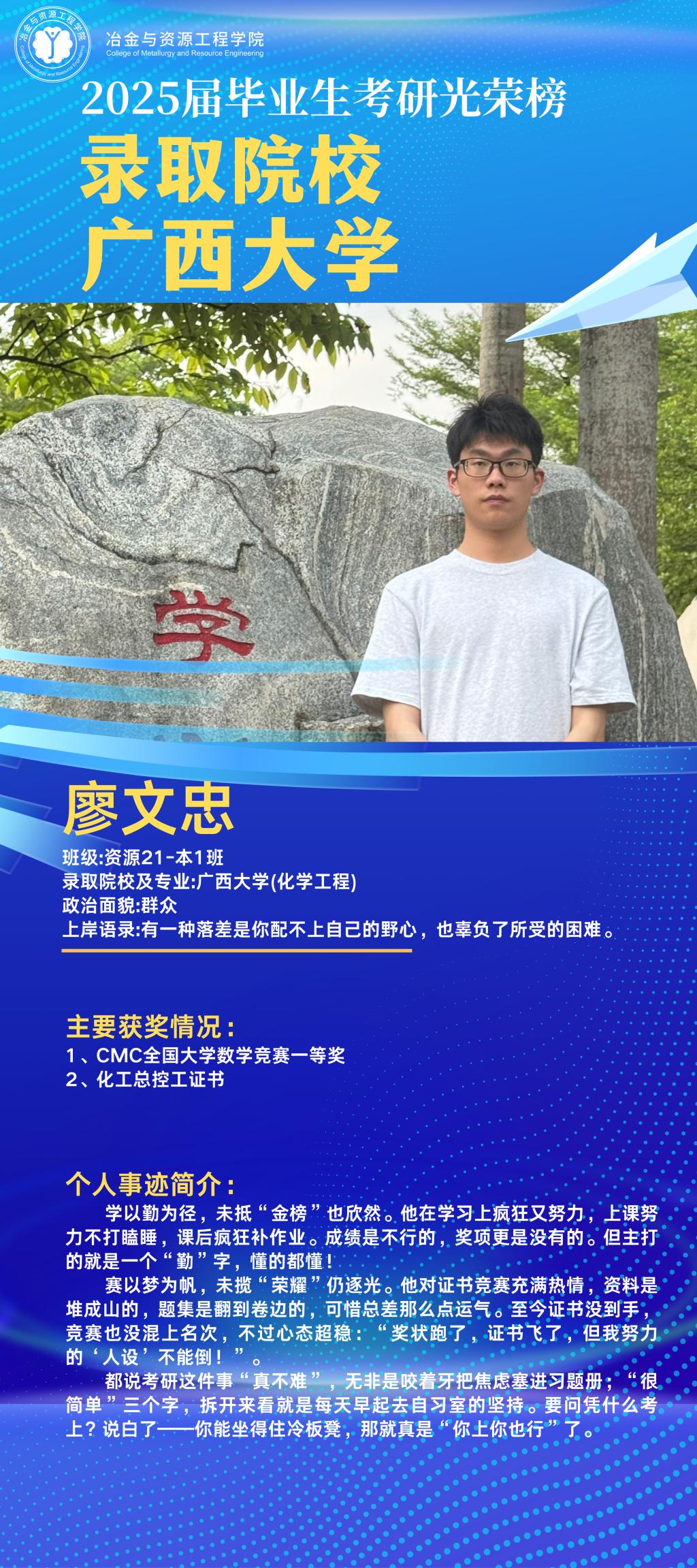 宝剑锋从磨砺出,梅花香自苦寒来。2025年,冶金与资源工程学院13名毕业生成功考研上岸!他们在公式的密林中披荆斩棘,勇毅前行;他们于知识的海洋中踏浪前行,一往无前;他们以勤为笔,书写着人生的精彩篇章,他们用汗水与坚持,书写了青春的华章,为学院增添了光彩。