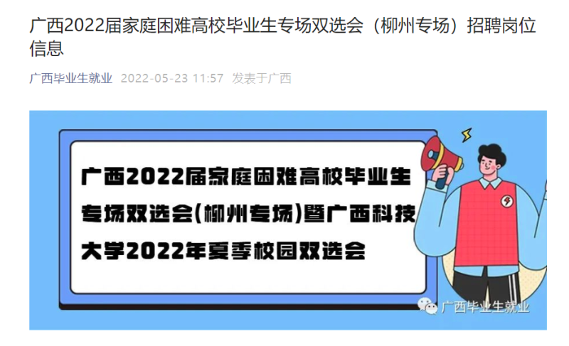 2. 广西2022届家庭困难高校毕业生专场双选会(柳州专场)招聘岗位信息,详情关注公众号