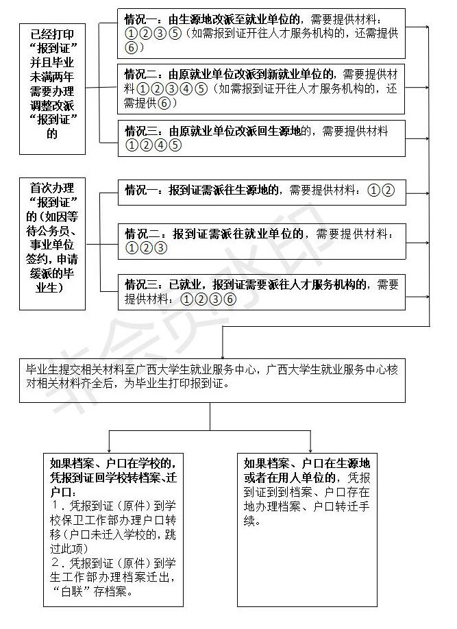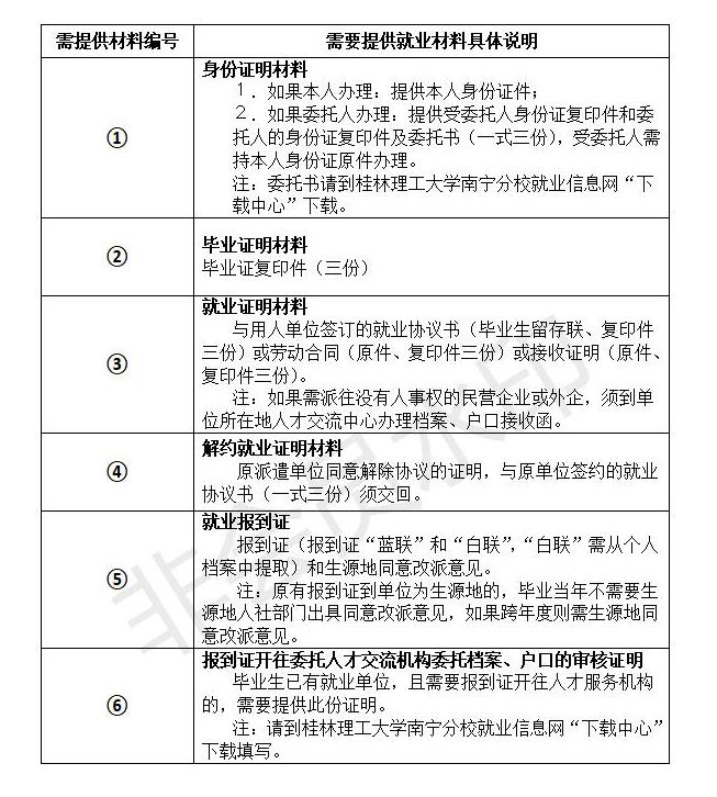 毕业生请根据本人情况按照流程图办理手续,需提供的证明材料请按“编号”详见下表对应栏提供。