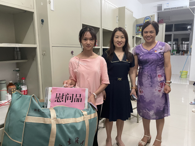 陈东莲副校长和肖彩霞副校长分别来到秀雅园4栋B座女生宿舍217和511以及周边宿舍,查看了新生宿舍水电及卫生等情况,同新生进行亲切交流、嘘寒问暖,给予了无微不至的关怀,并为新生代表送上慰问品,勉励新生和睦共处,共建情谊,好好学习,天天向上,提醒同学们强化安全意识,尤其是预防电信诈骗等。
