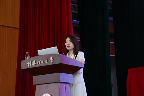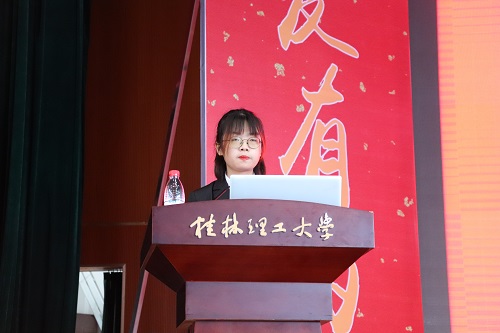 十佳教师获得者梁宁老师作为教师代表向新生们分享了老师对同学们的深厚寄语,学会独立生活、学会为人处世、学会为自己读书、学会交友,经历在桂工三、四年难忘的时光,成为更好的自己。国家奖学金获得者冶金工程19-本1班韦洁作为老生代表向新生们分享了自身成长的经历,鼓励新生们明确目标,付出行动,久久为功。资源22-本1班的叶冰代表新生们表达了对大学生活的憧憬,表示会怀揣梦想,珍惜时光,努力探索,勇敢走向未知的前方。