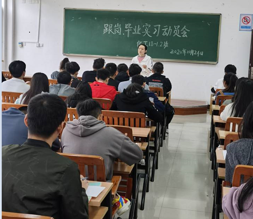 党总支副书记兼学工组长方艳对毕业生外出实习作动员讲话