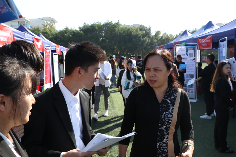 11月13日上午,分校在足球场举办了2021届毕业生就业双选会。我系认真组织2021届全体毕业生到场参加。系主任何贵香、系党总支书记石有总、系党总支副书记兼学工组组长方艳、系团总支书记潘显鹏以及我系部分任课老师和毕业班班主任亲临现场与企业单位交流并对毕业生就业进行指导。