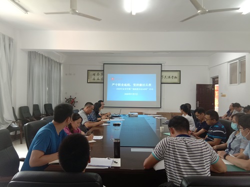 7月7日下午,我系探源楼5207会议室开展2020年春季学期廉洁从教专题党课,教育和引导教职工强化规矩意识,严守职业底线,坚持廉洁从教。此次专题党课由系党总支书记石有总主讲。