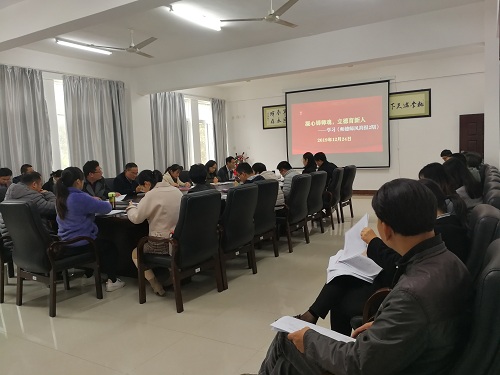 最后,石有总书记具体剖析了教育部公开曝光的8起违反教师职业行为十项准则典型案例,重申了《桂林理工大学师德师风负面清单和失范行为处理办法》中违反师德师风的行为和处理程序,要求全体教职工深入贯彻落实党的十九大精神,立足于立德树人根本任务的必然要求,以卢永根、沧南等两位同志为榜样,从本职岗位做起,在思想政治纪律、教育教学、学术道德、工作生活作风、廉洁从教从业等方面严格要求自己,不畏艰难困苦,勇于担当负责,深入落实立德树人根本任务,争做党和人民满意的“四有”好老师。