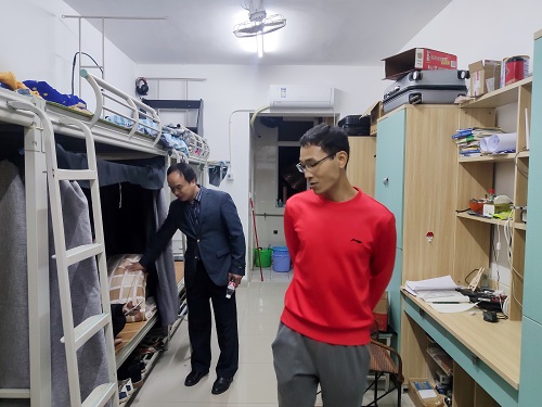 党总支书记石有总、党总支副书记兼学工组长方艳,辅导员王震、陈荔弦,班主任蒋学先、孟冠军、陆燕青分别带领学生会成员组成检查小组,对我系学生宿舍进行安全隐患全面排查。检查过程中,检查小组对宿舍违规电器、大功率电器、私拉电线、宿舍抽烟、占用消防通道等安全隐患进行重点排查,同时进行卫生检查,养成良好生活习惯。