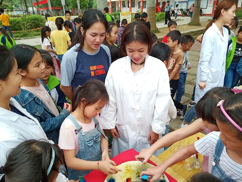 4月12日,由崇左市科学技术协会主办、分校科技部协办的“南疆国门科普行”活动在龙州县下冻镇中心小学举行。我系团总支书记方艳老师带领我系5名学生代表以志愿者的身份一同加入到此次科普宣传活动中。