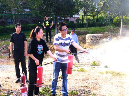 接着,罗老师跟同学们分享了消防安全知识,并为大家演示灭火器的正确使用方法;带领同学们观看近期广西南宁花鸟市场的火灾视频,用生活中的实例为同学们敲响警钟。随后,我系师生前往实训楼轮流上场进行灭火器实操训练。