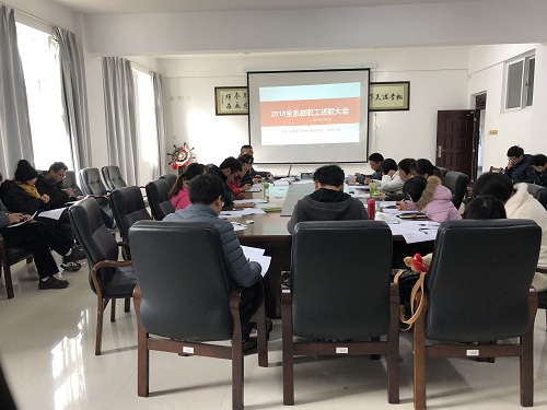 1月2日上午,我系在探源楼207会议室召开2018年全系教职工述职大会,系部领导班子及全体教职工参加会议。会议由系主任何贵香主持。