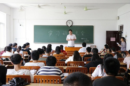 随后,系部副主任王军正就如何开展实习活动、完成实习任务作了具体布置,并提出了实习期间需要注意的具体要求,再次强调了实习期间的纪律问题和安全问题。指导老师吴小华就同学们在实习期间充分利用网络教学平台完成签到和提交实习周报、总结等工作做了详细说明。最后,吴祖枝老师代表班主任及学工就实习安全,配合老师完成实习任务等方面作了动员发言。