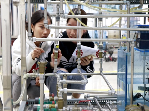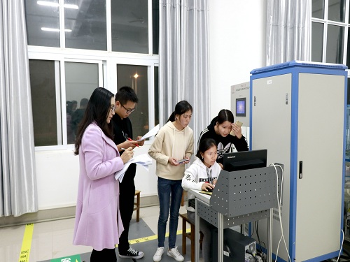 本次竞赛综合考核学生熟练掌握和运用所学的基本理论和技能分析、解决实际问题的能力。实际操作考核分三块模板,一是电脑模拟实验操作,二是BLE自动控制箱操作,三是调节整个系统的功率与参数。每组三人进行考核,完成此次比赛需要团队三人明确分工及默契配合。例如,一位同学在电脑上进行电脑模拟实验操作,另一位同学接着转到监控中心,最后需要剩余两位同学一起进行实验操作。在比赛过程中,每一位参加比赛的选手都能全神贯注在每一个操作环节上,并在规定的时间内完成竞赛任务。
