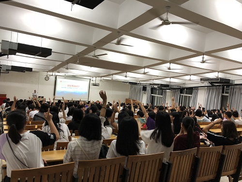 9月13日20:00,我系党总支书记石有总为2018级新生开展了一场生动活泼、具有较强号召力的以“责任在肩,担当在行,让奋斗成为青春逐梦的推动力”为主题的形势与政策报告会。形势与政策报告会从“中国梦与中国崛起”、“新青年与人才竞争”、“责任心与担当有为”、“去奋斗与青春逐梦”四个部分来逐步教育和引导2018级新生用实际行动唱响“责任、担当、奋斗”这些新时代的主旋律。石有总书记以视频展示和讲解引导的方式从中国的红色梦想说起,逐步引导大家深入理解中华民族伟大复兴梦想与个人梦想之间的密切联系,国家和民族发展同个人发展之间的紧密融合,通过互动的方式向大家介绍党的十九大精神,展示中国崛起的崭新面貌,并指出新时代我国的“两个没有变”,从而激发大家的民族自豪感、历史责任感和时代使命感,希望大家能够以一个强大的责任心去对待国家、社会、家长和自己,积极响应习近平总书记勇做新时代“三有”新青年的号召,树立竞争意识,强化责任担当,珍惜韶华,脚踏实地,努力学好专业知识和技能,并积极利用各种平台和舞台锻炼自己的能力和素质,不断提升搏击青春的本领,提升自身的竞争力,为实现为中华民族伟大复兴的中国梦而贡献智慧和力量。