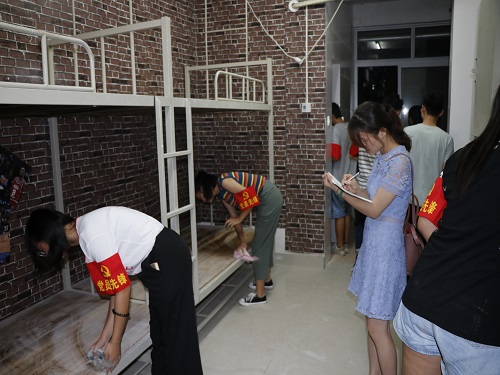 针对宿舍内可能存在的问题,我系老师对2018级的新生宿舍进行了仔细地排查,排除了屋内墙顶的安全隐患,检查了床板和空调等设施是否安全,记录了屋内急需要修护的问题。学生党员们主要负责打扫工作,众人合力打落了天花板上即将掉落的墙粉、打扫了床板和地面、擦拭了桌面洗漱台、收拾了屋内留下的旧物等。