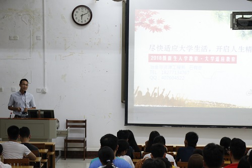 经历了黑色六月的洗礼,大学新生来到了一片新的天地,“尽快适应大学生活,开启人生精彩篇章”成为了我系2018级新生适应教育的主题。9月10日晚,我系党总支书记石有总为新生呈现了一堂精彩纷呈的适应教育课。