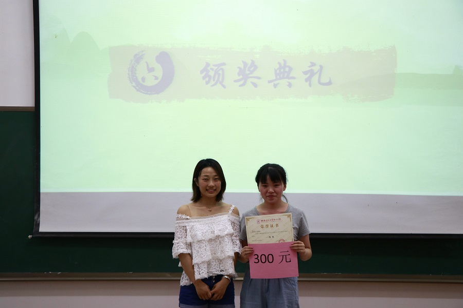 团委副书记谢欢老师为一等奖颁奖